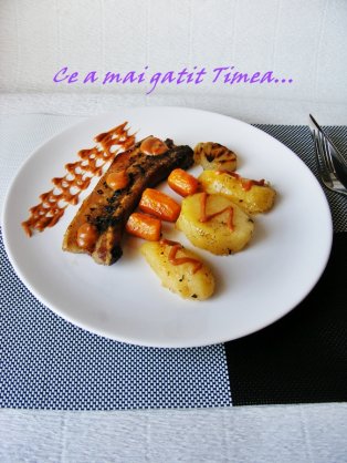 Carnea fiarta o scoatem si o putem gati separat. ( eu am facut pulpe si aripi pane)
